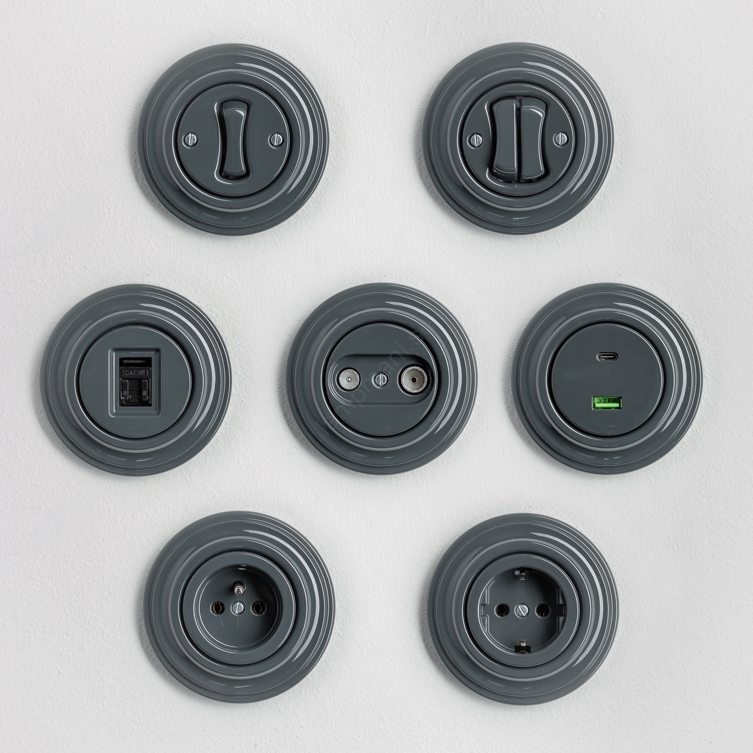 • Kliklap - Retro dubbel trappströmbrytare med ram nr. 6+6, grå