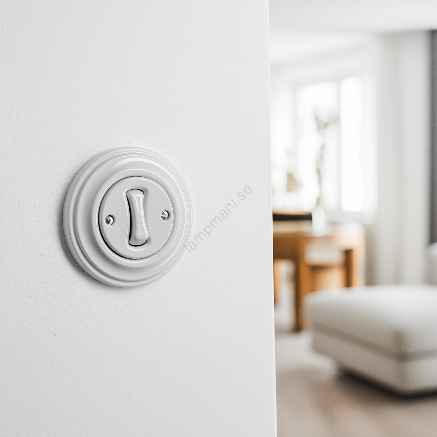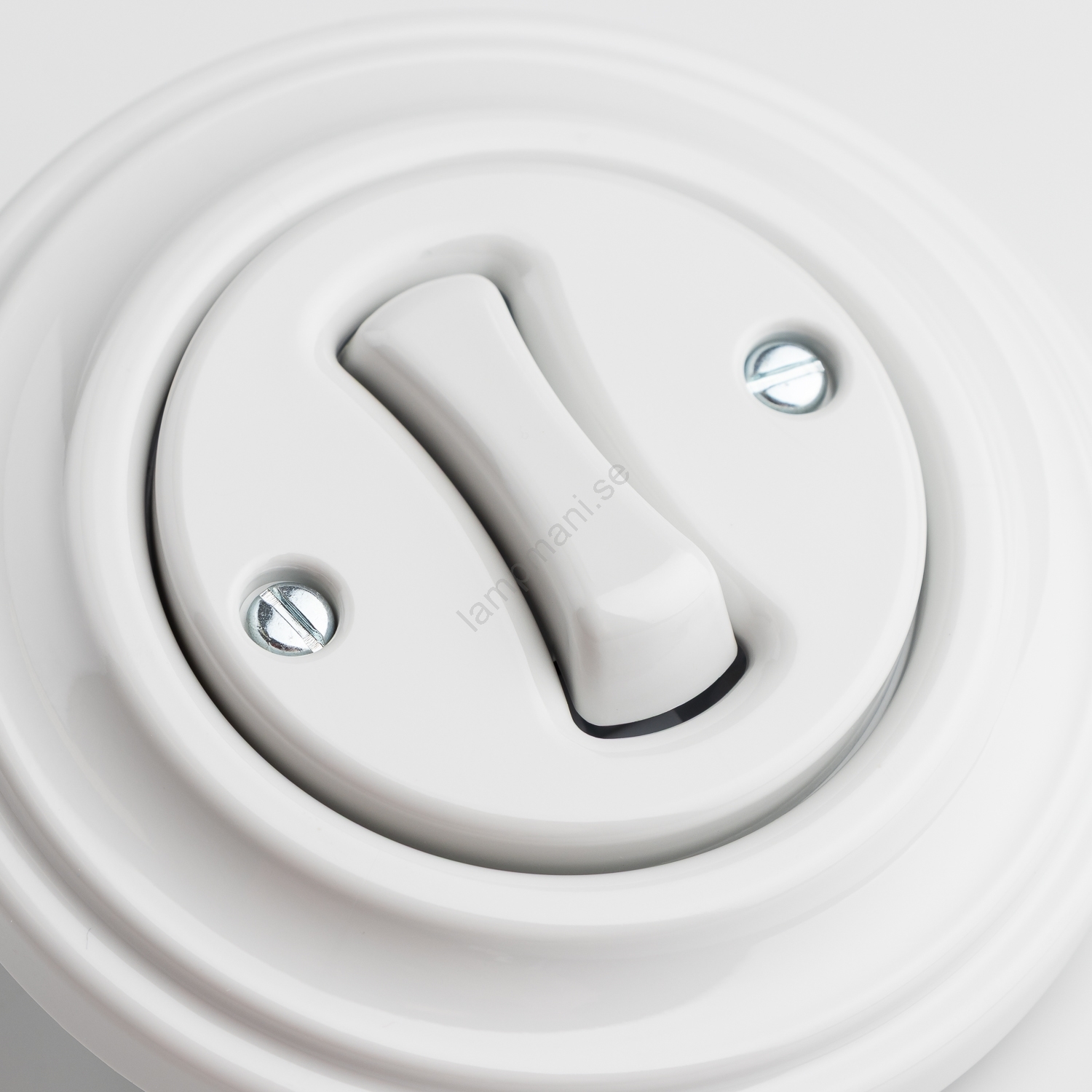 • Kliklap - Retro enpolig strömbrytare med ram nr. 1, vit i keramik