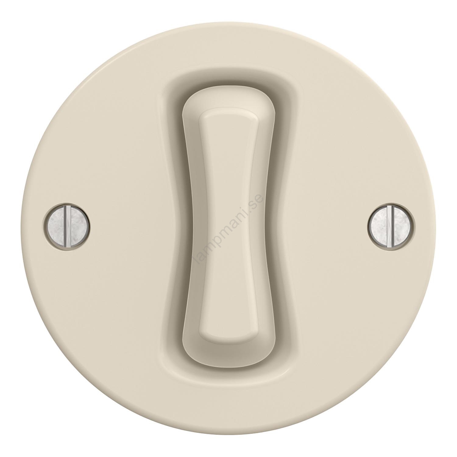 • Rund strömbrytare i beige nyans.