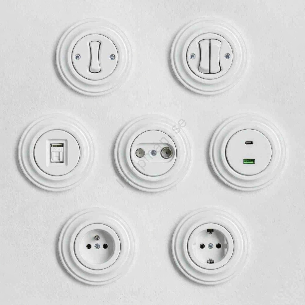 • Kliklap - Retro seriebrytare utan ram nr 5, vit keramik