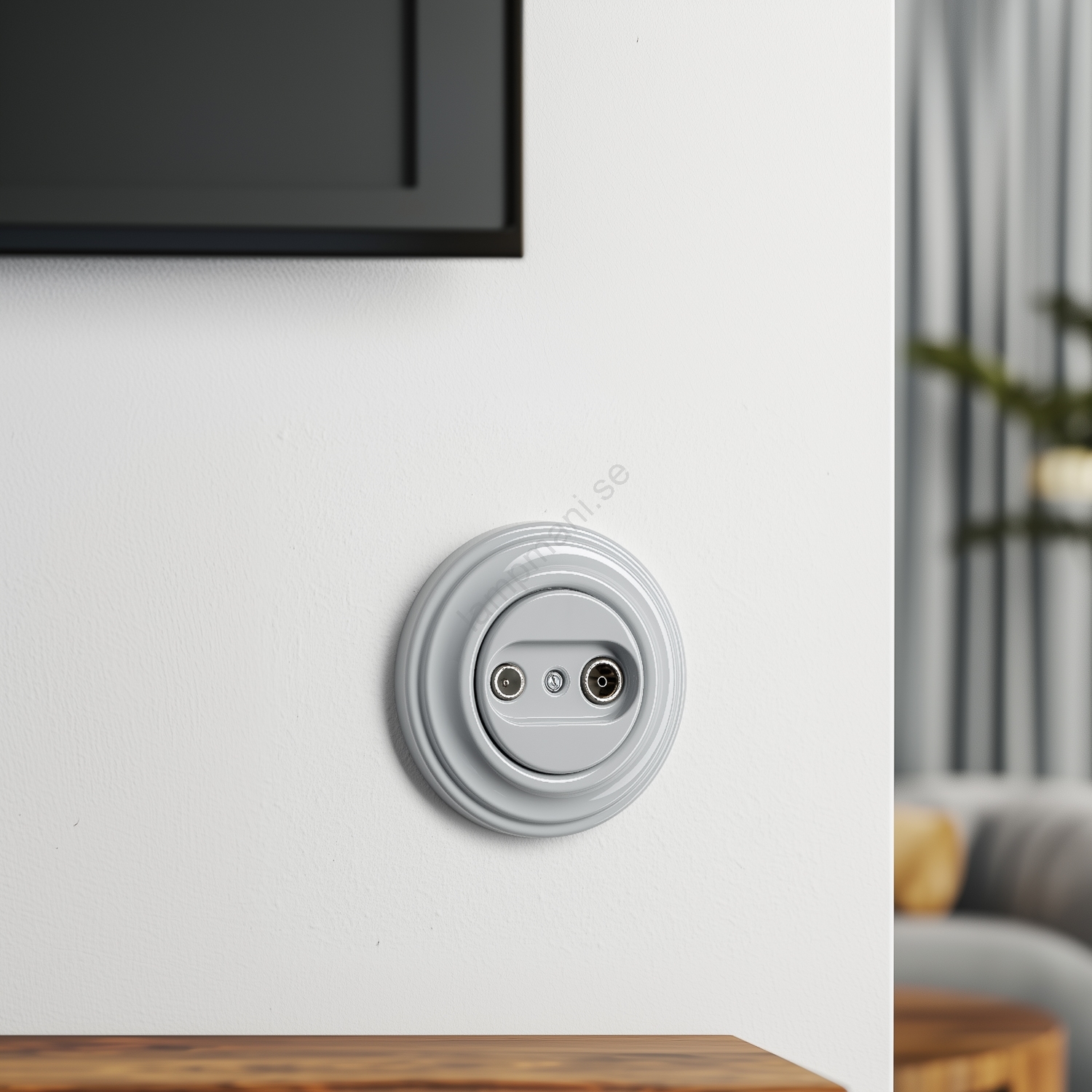 • Kliklap - Retro TV- och radiouttag (genomgående) med ram, grå