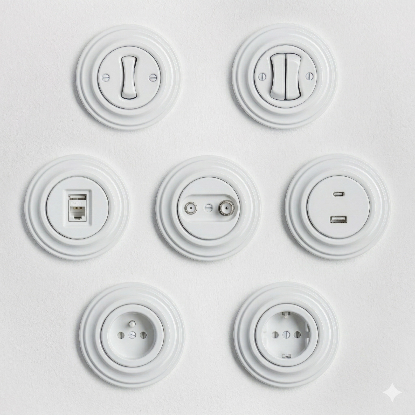 • Kliklap - Retro vägguttag för hemmet med ram SCHUKO 230V/16A, vit keramik