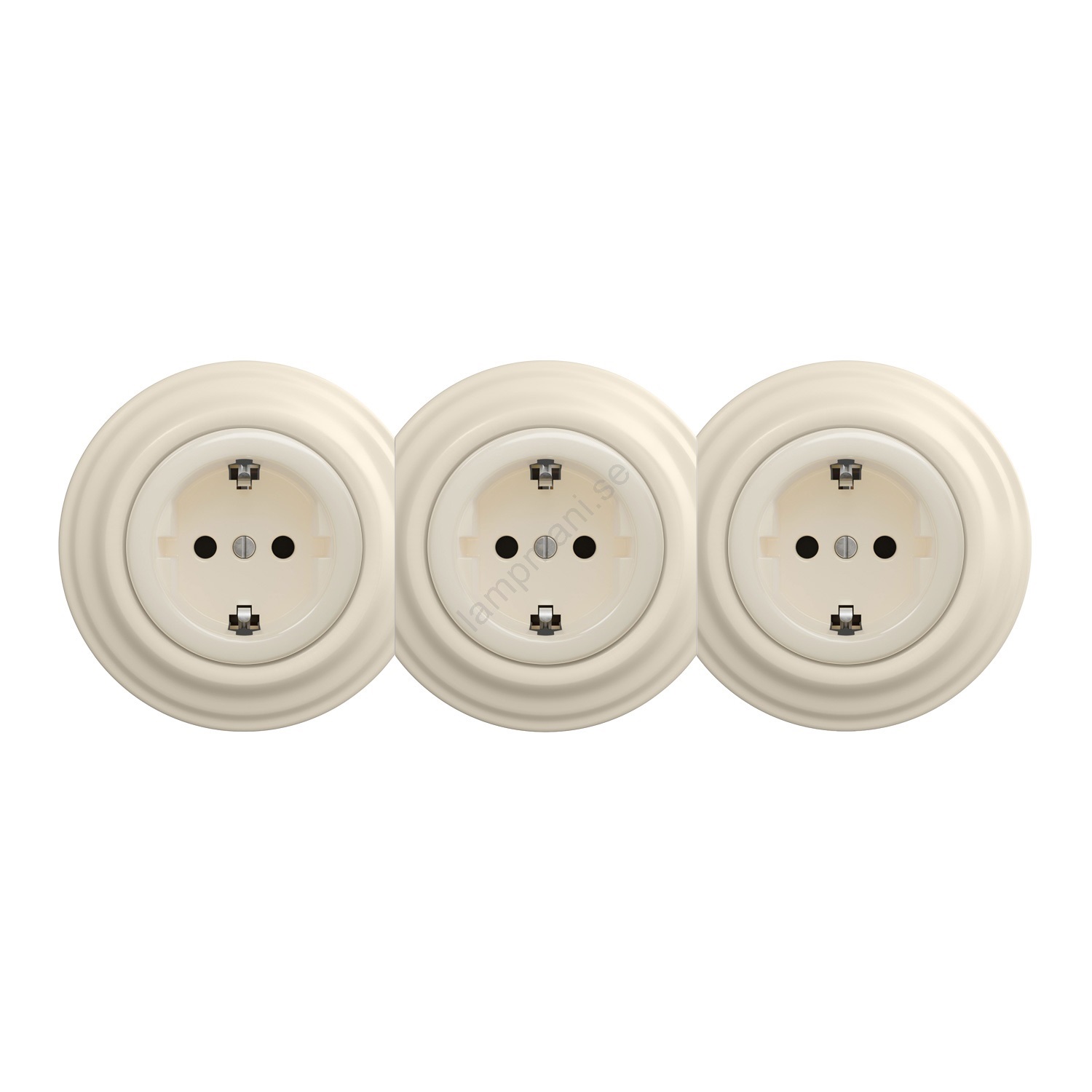 • Kliklap - Trefaldigt retro vägguttag för hemmet med ram SCHUKO 230V i vit keramik