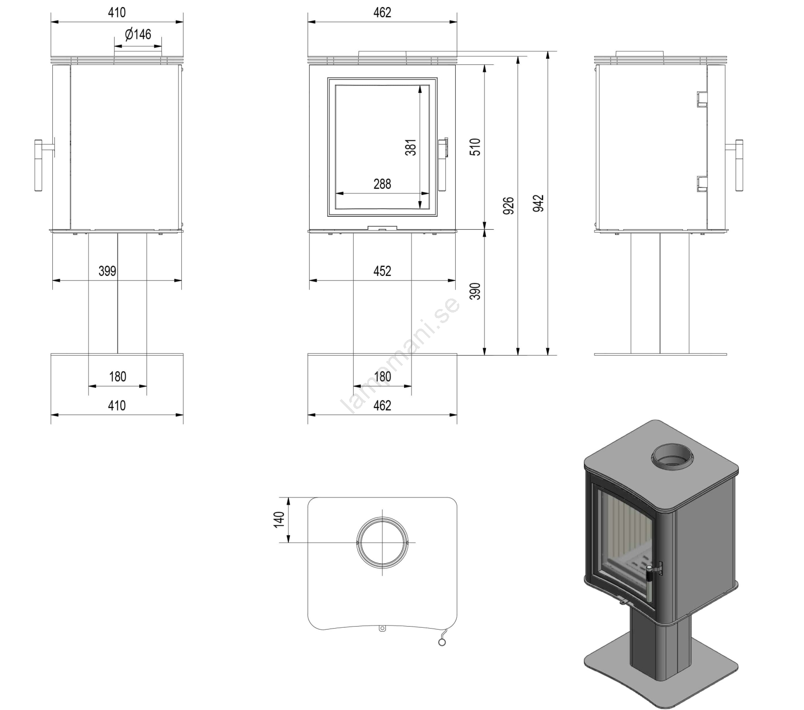 • Fristående kaminen måste anslutas till en separat skorsten.