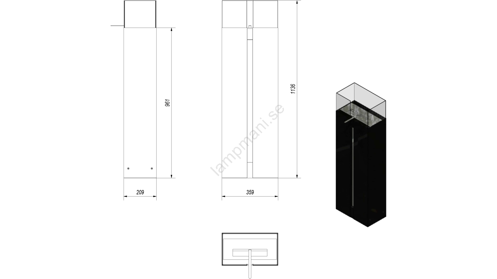• Mått på kamin: 113,6 x 35,9 x 20,9 cm.