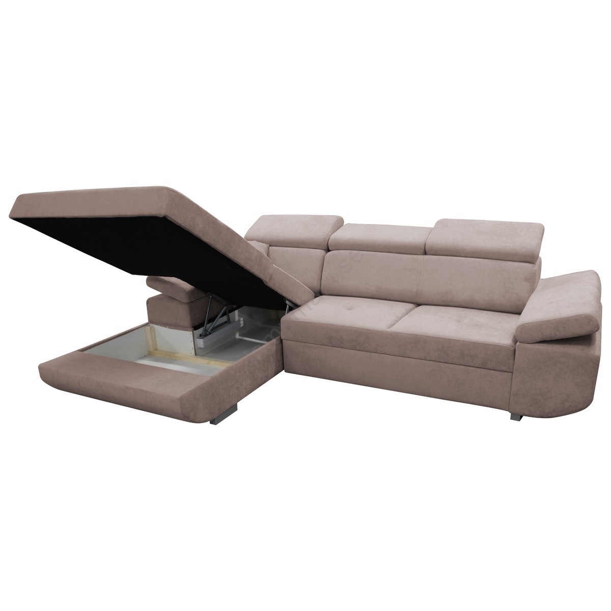 CASTELO L-formad bäddbar hörnsoffa med förvaring, vänster, beige | Lampmani