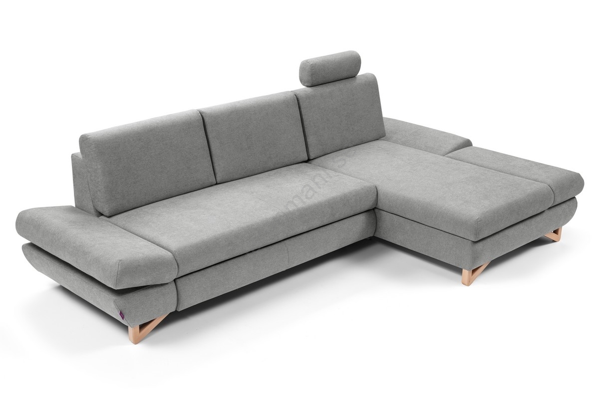 • L-formad utfällbar stoppad hörnsoffa AVESTA, höger, med förvaringsutrymme, grå