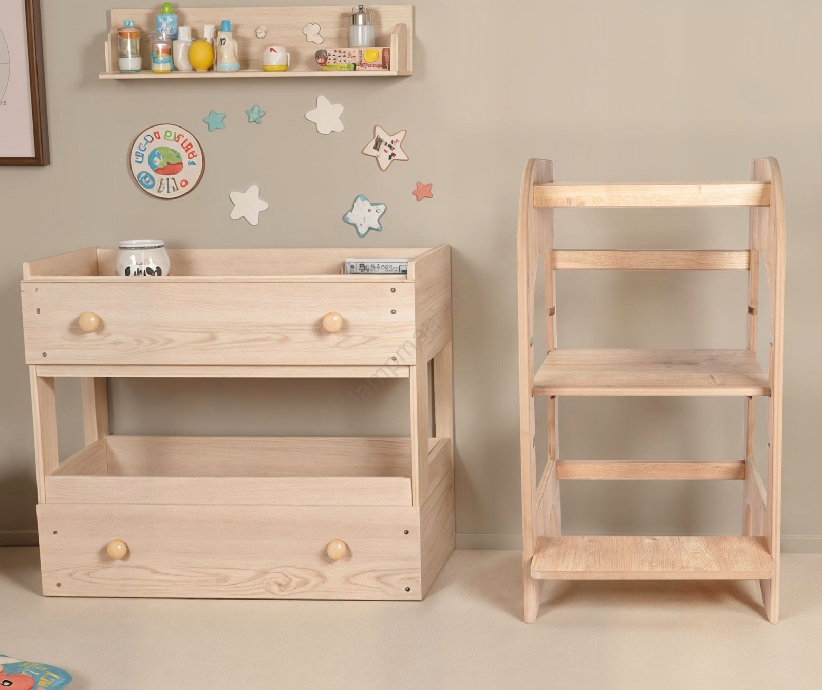 Våra produkter är tillverkade av högkvalitativ spånskiva, som kombinerar styrka och stabilitet. Små färgskillnader kan förekomma med detta material, vilket understryker dess naturliga design och det unika i varje produkt.