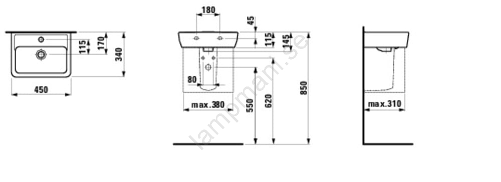 LAUFEN H8119510001041 - Tvättställ för bänkskiva/väggmonterat PRO 45x34 cm keramik/vit | Lampmani