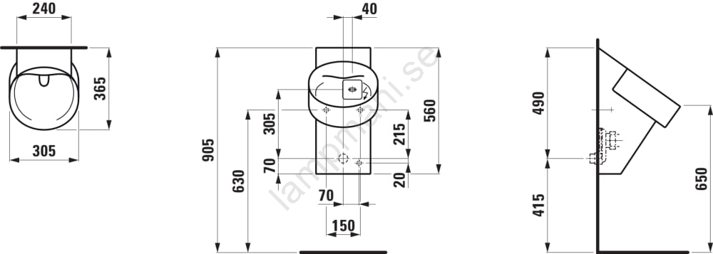 LAUFEN H8402867160001 -Sensorstyrd pissoar VAL 230V bakre tillopp, bakre avlopp matt svart | Lampman
