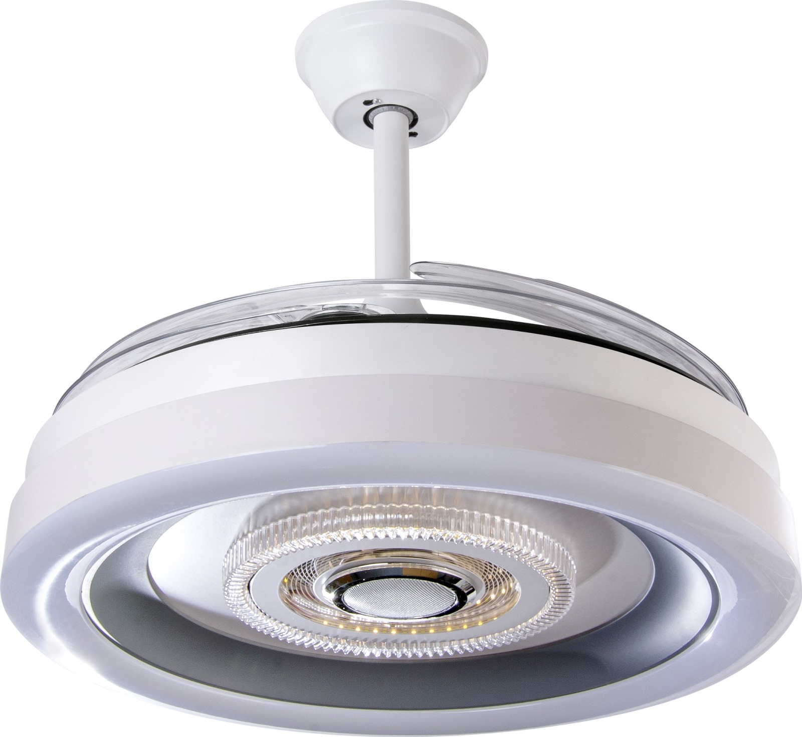 • Bladen kan fällas in – fläkten fungerar då som en klassisk taklampa.