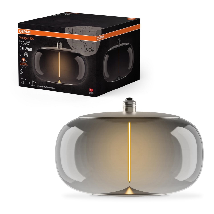 LED glödlampa VINTAGE FILAMENT E27/4W/230V 1800K rökt - Osram | Lampmani