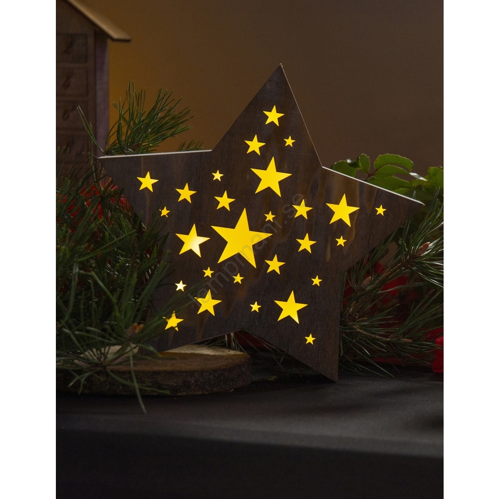 • Juldekoration - trästjärna med perforeringar i form av stjärnor.