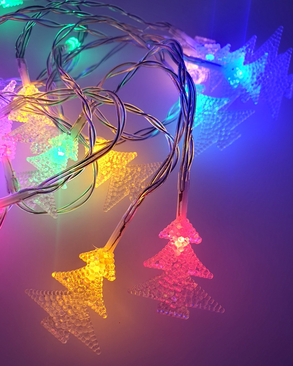 LED-utomhusslinga 20xLED/2xAA 2,2 m IP44, flerfärgad med granformade lampor