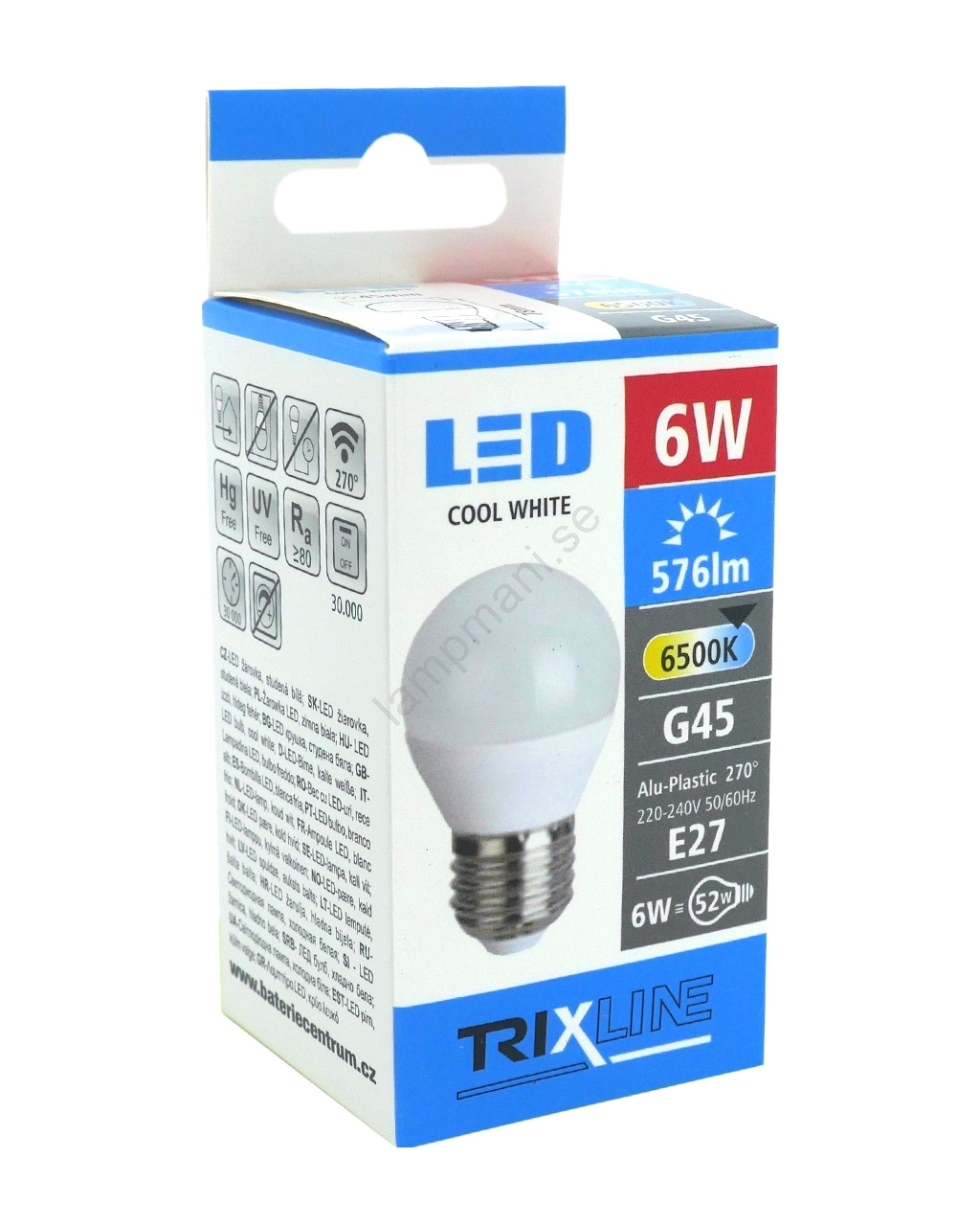 LED glödlampa G45 E27/6W/230V 6500K Kvalitetsdesign garanterar perfekt belysning av din interiör. Kategorin E27 är avsedd för glödlampor med samma sockel. Här kan du välja mellan traditionella glödlampor eller de många moderna LED-lamporna som är mer energieffektiva och har en längre livslängd.