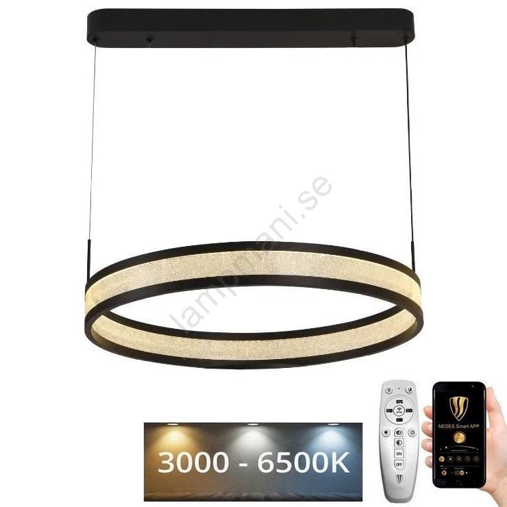 LED ljusreglerad ljuskrona på textilsladd LED/45W/230V 3000-6500K diameter 60 cm svart + fjärrkontroll