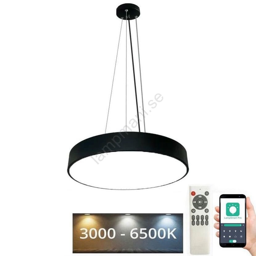 LED ljusreglerad ljuskrona på textilsladd LED/50W/230V 3000-6500K svart + fjärrkontroll | Lampmani