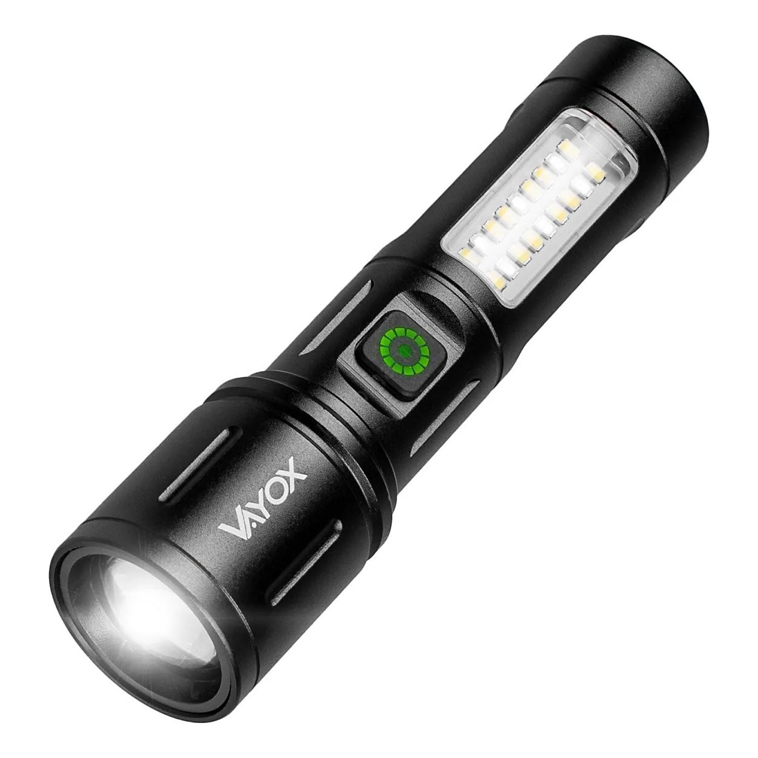 • Taktisk uppladdningsbar ficklampa med sidoljus.