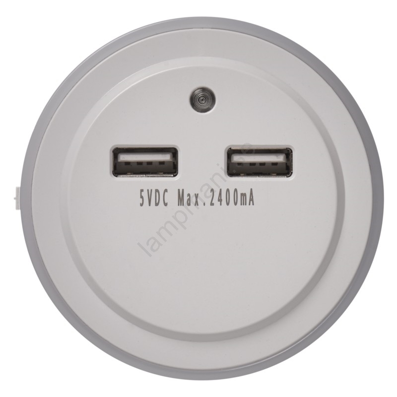 LED-nattlampa för vägguttag med ljussensor + 2 USB-portar, 3x LED, 0,3 W, 230 V | Lampmani