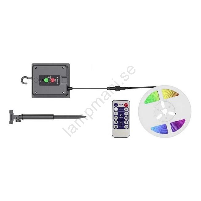 LED RGB Ljusreglerad solcell list LED/1,2W/3,7V IP67 5m + fjärrkontroll