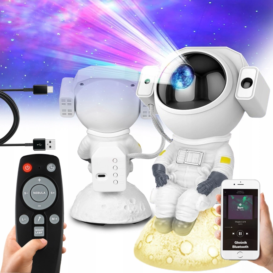 LED RGB-projektor 3-i-1 LED/5W/5V 3000/4000/6000K Astronaut + fjärrkontroll