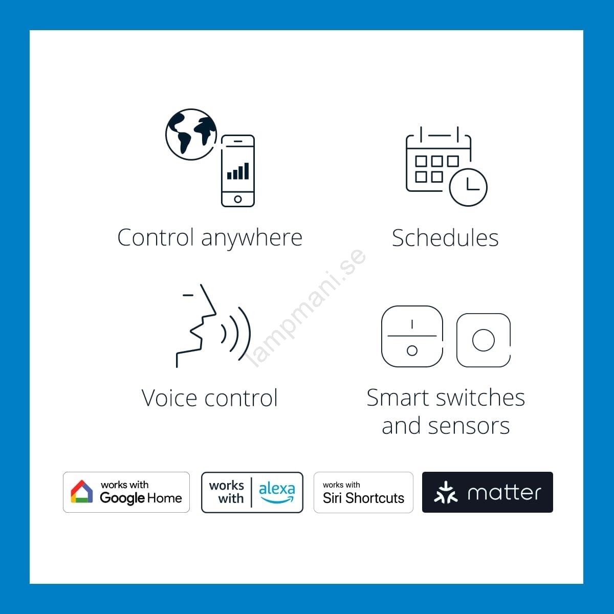 • Stöd för röststyrning med Google Assistant, Alexa eller Siri.