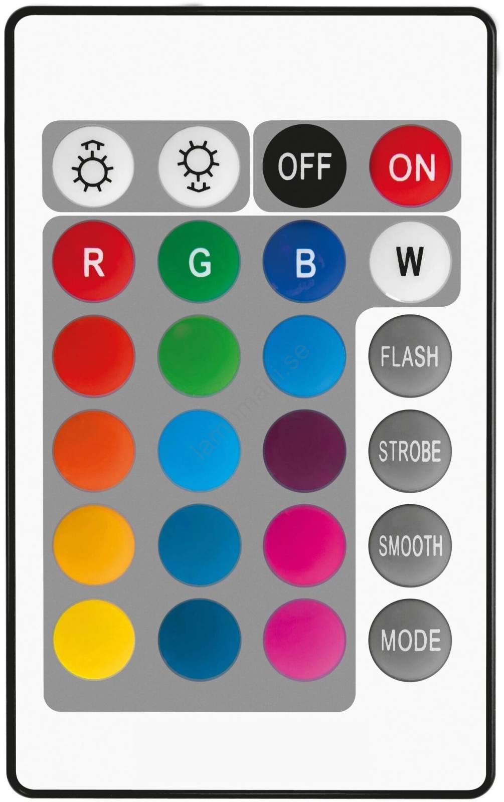 Fjärrkontrollens utseende och funktioner kan variera beroende på ljusets parti eftersom tillverkaren ständigt strävar efter att förnya utbudet.