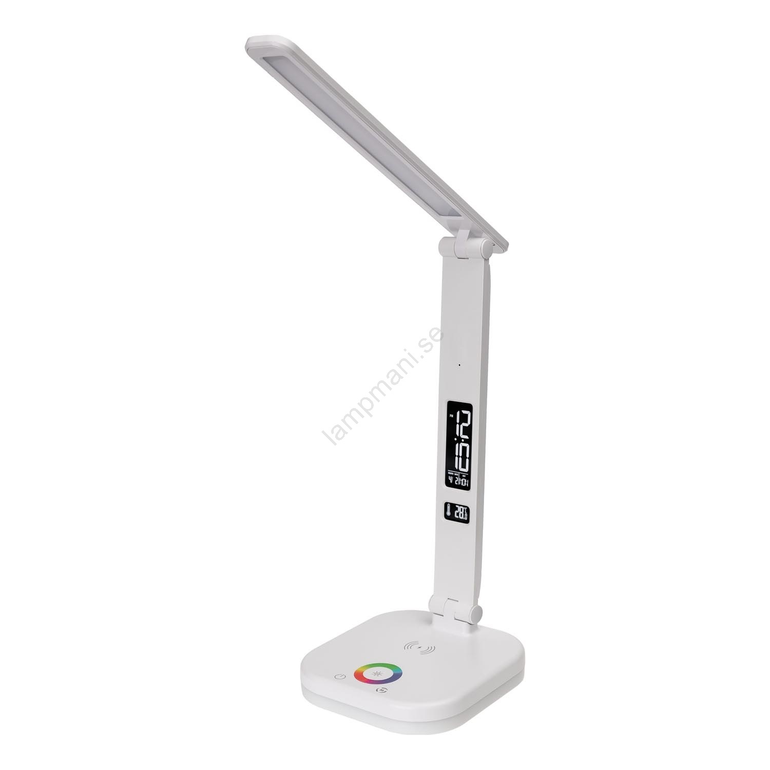 LED RGBW Dimbar lampa med trådlös laddning, display USB port 6W/5V 3000-6500K vit | Lampmani