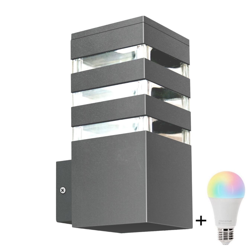 LED RGBW dimbar utomhusvägglampa TEKSAS 1xE27/12W/230V 2700-6500K Wi-Fi IP44 antracit