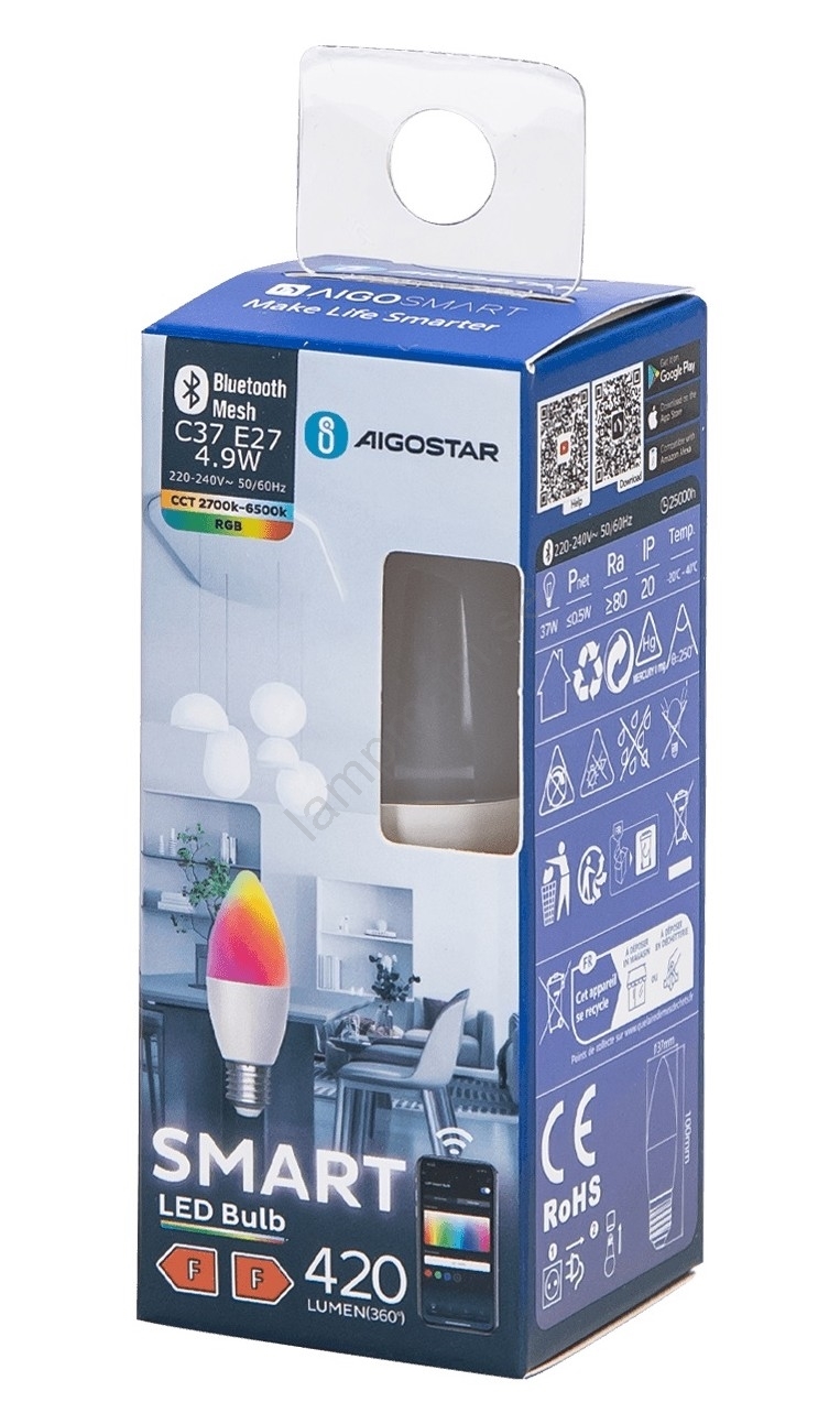 LED RGBW-lampa C37 E27/4,9W/230V 2700-6500K - Aigostar | Lampmani