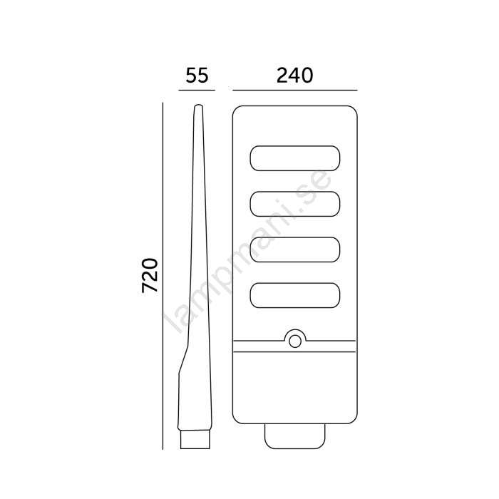 • Solcellsdriven LED-gatuarmatur med rörelse- och skymningssensor.