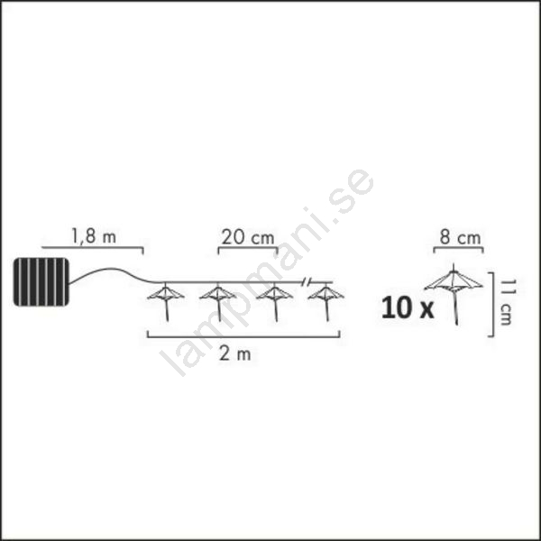 LED solcellskedja 10xLED/1,2V 300 mAh 3,8 m IP44 parasoller | Lampmani