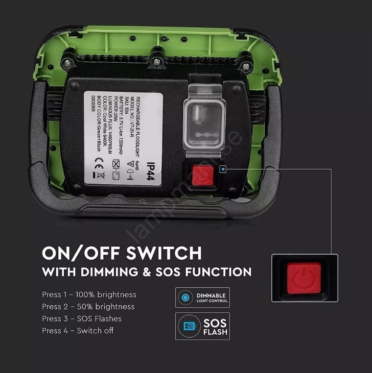 • LED Ljusreglerad uppladdningsbar strålkastare SAMSUNG CHIP + funktion SOS LED/20W/3,7V/USB IP44 4000K 7200 mAh grön
