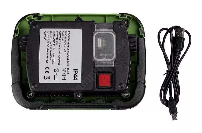 • LED Ljusreglerad uppladdningsbar strålkastare SAMSUNG CHIP + funktion SOS LED/20W/3,7V/USB IP44 4000K 7200 mAh grön