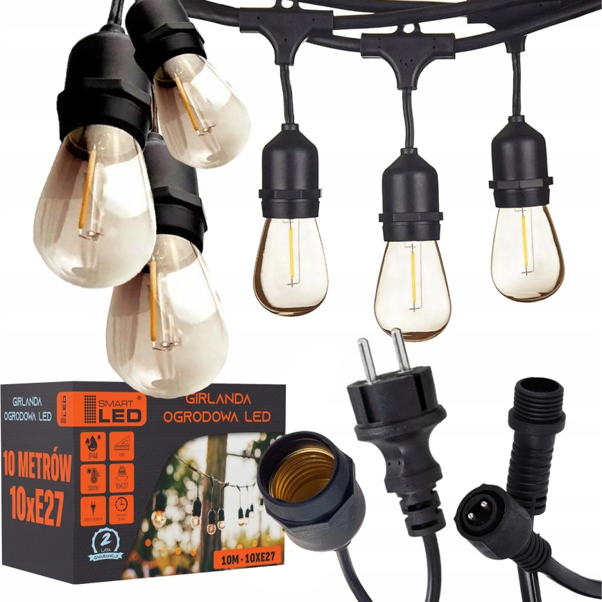 LED utomhus dekorativ ljusslinga 10xE27/1W/230V 10,94 m IP44 svart | Lampmani