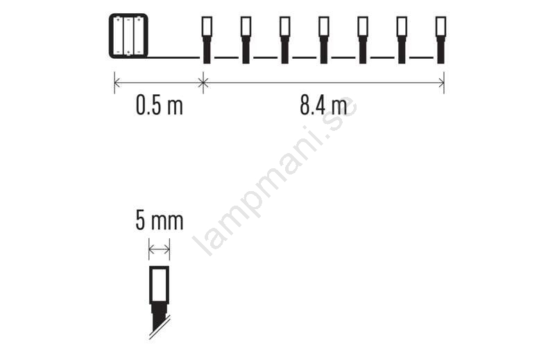 • Längd på den belysta kabeln: 8,4 m.