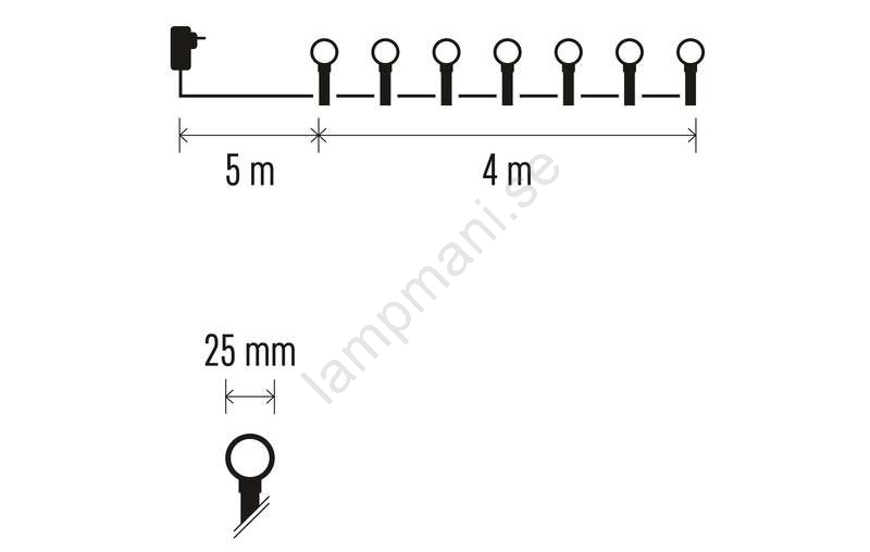 • Längd på den belysta kabeln: 4 m.