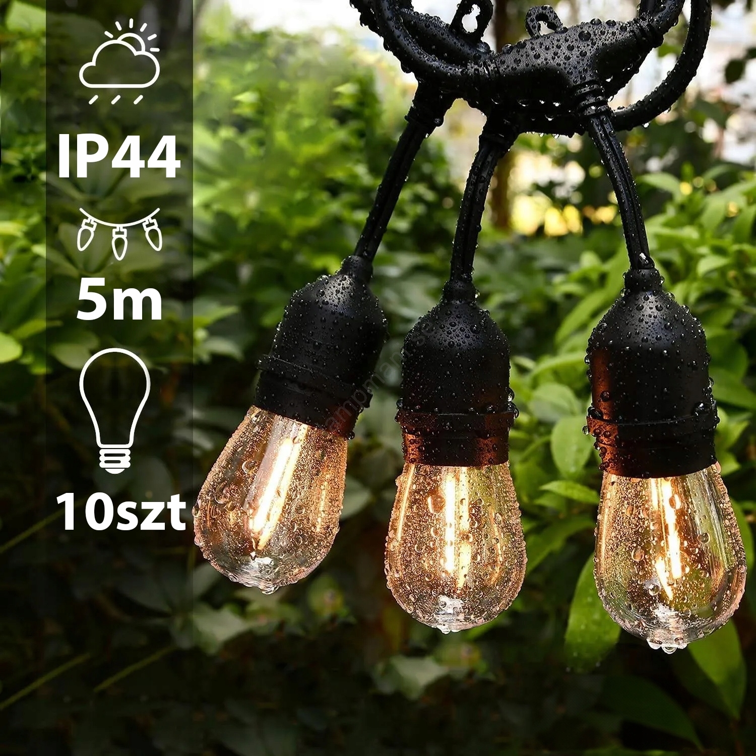 LED utomhusljusslinga 10xE27/1W/230V 6,44 m IP44 svart | Lampmani