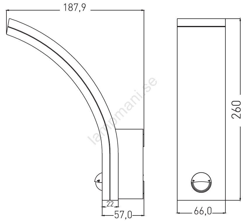 • Armaturen är utrustad med infraröd (PIR) rörelsesensor samt skymningssensor.