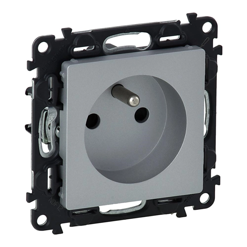 Legrand 753380 - Vägguttag Hem VALENA LIFE 250V/16A 2P+T AS. aluminium | Lampmani