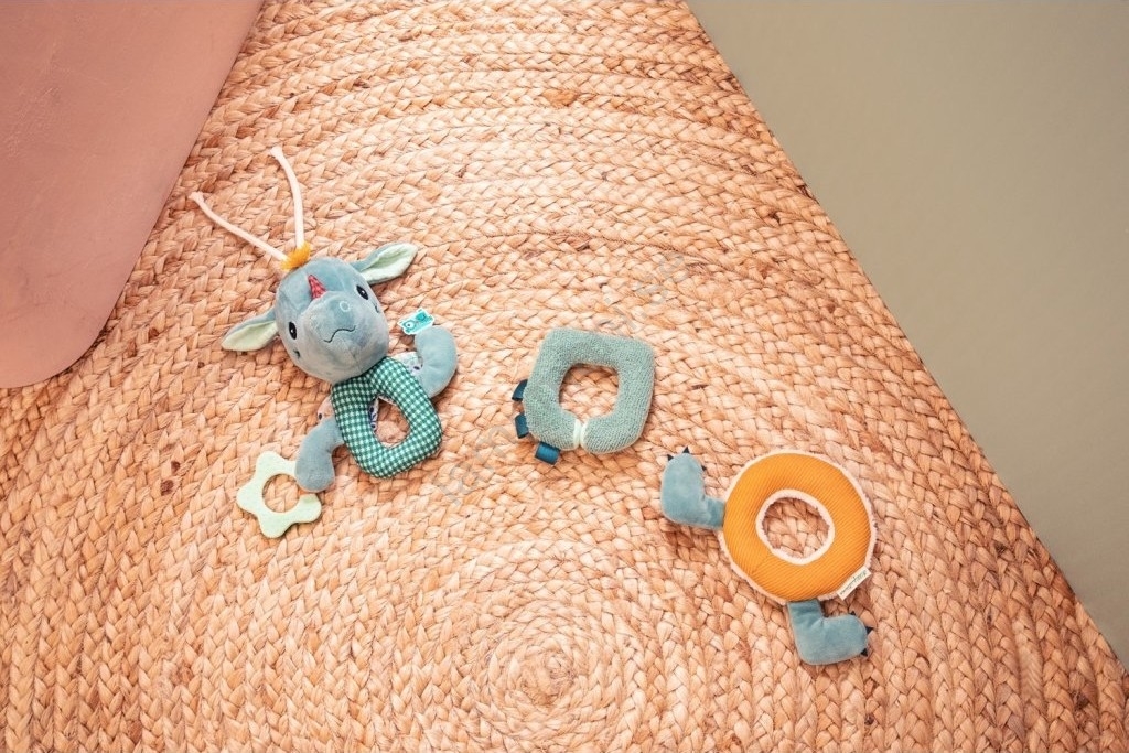 • Tack vare snöret kan kedjan enkelt hängas över spjälsängen eller lekfilten.