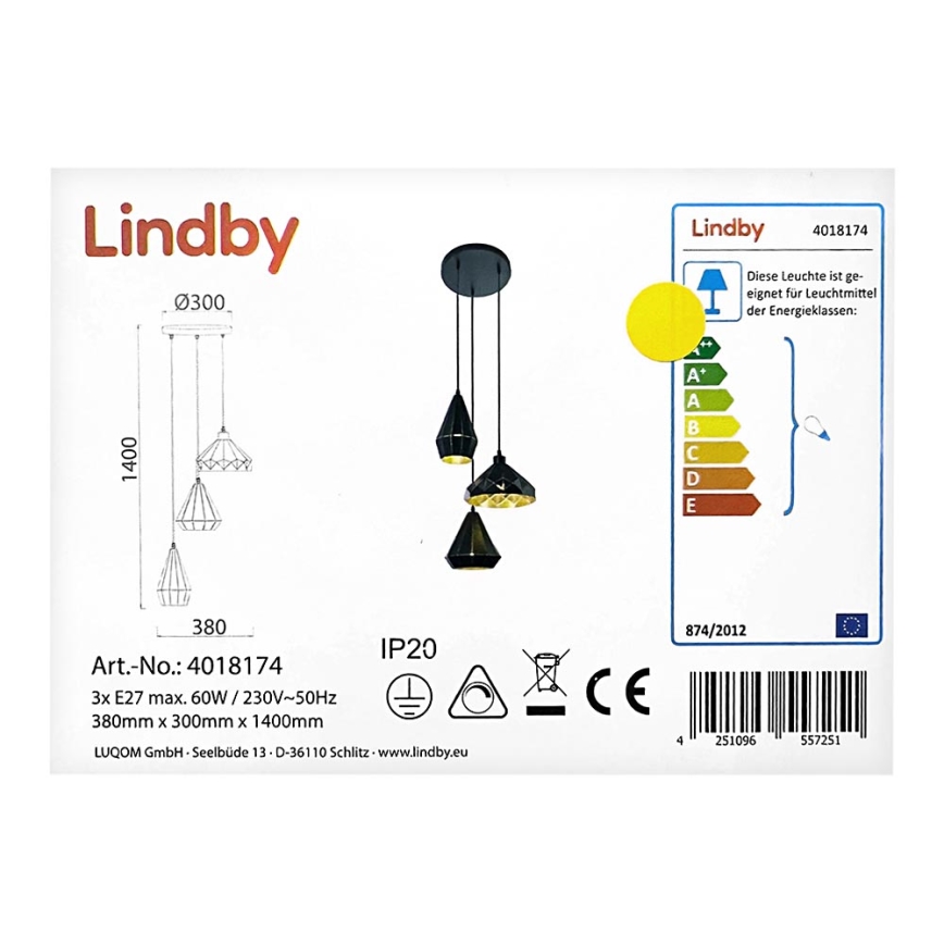Lindby - Ljuskrona med textilsladd 3xE27/60W/230V | Lampmani