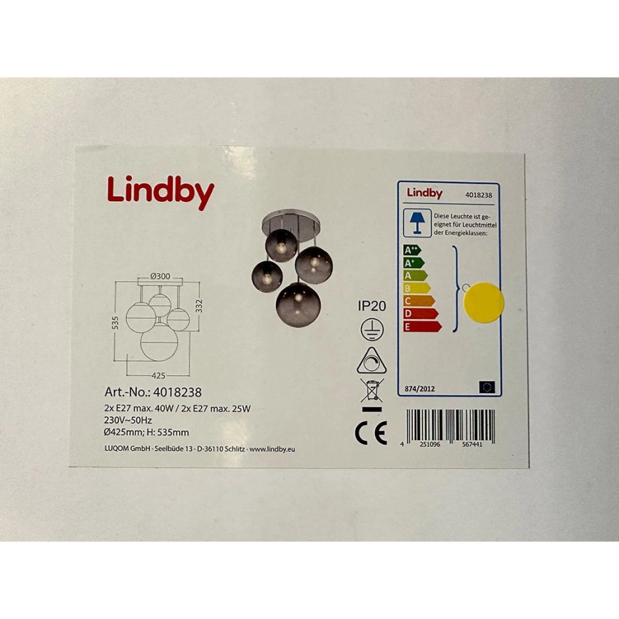 Lindby - Taklampa ROBYN 2xE27/40W/230V + 2xE27/25W/230V