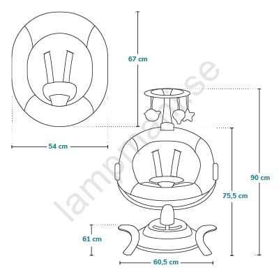 • Gungning från sida till sida samt fram- och tillbaka, 5 gunghastigheter + 1 automatisk som växlar var 16:e sekund.