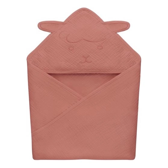 Lionelo - Badcape för barn i musselin med huva Röd korall