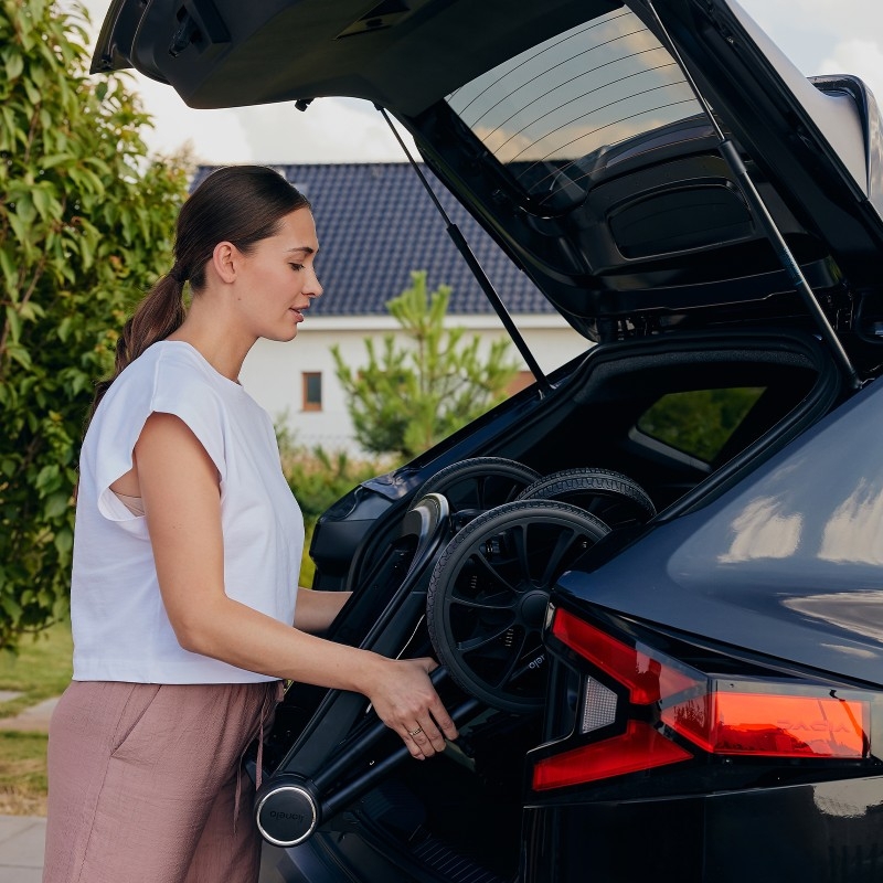 • Bilbarnstol med sidokrockskydd, nackstöd i minnesskum och DriSeat-insats mot svettning.