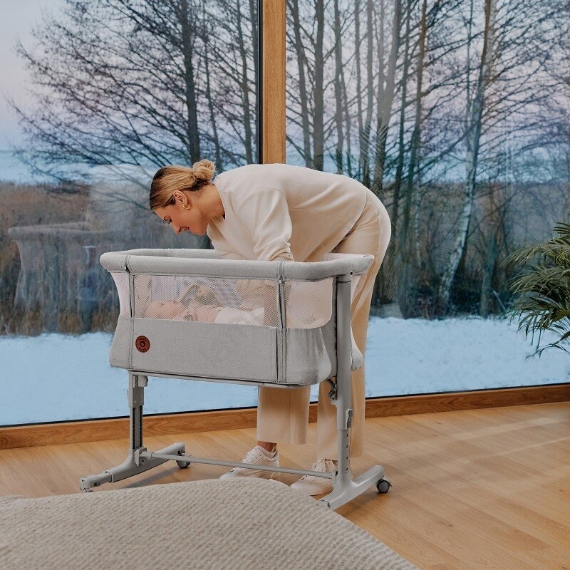 • Multifunktionell 3-i-1 spjälsäng: fristående spjälsäng, sidosäng och vagga.