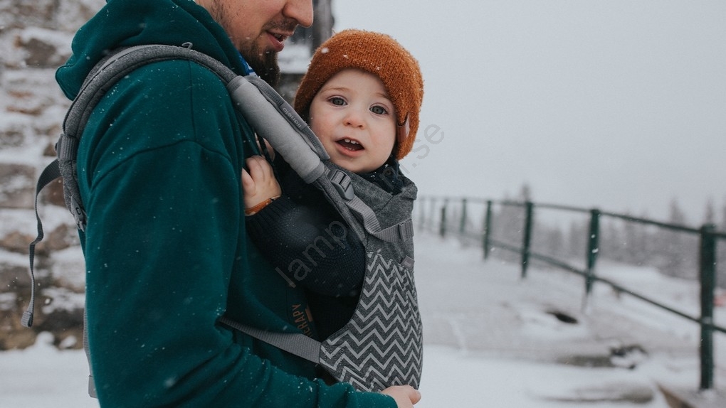 • Bred tygpanel som stöder barnets ryggrad i en naturlig position.