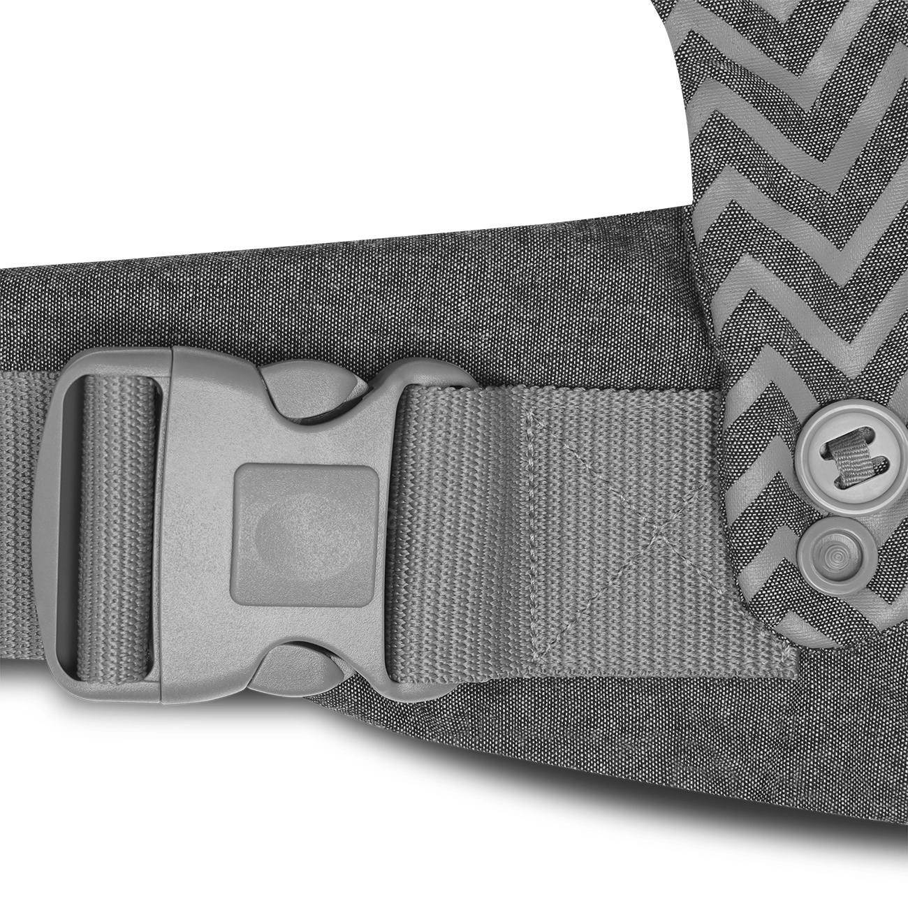 • Dubbel säkerhetsfunktion på midjebältets spänne som garanterar att barnet sitter stabilt.