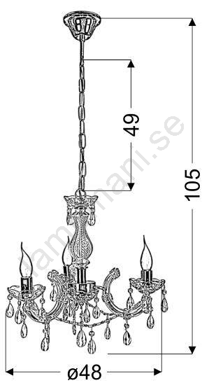 Ljuskrona med kedja MARIA TERESA 3xE14/40W/230V kännetecknar snygg och funktionell design. En glödlampa med E14 lock är lämplig för lampan. Här kan du köpa andra glödlampor till förmånliga priser. Du kommer att få ett intressant tillägg till ditt hem.